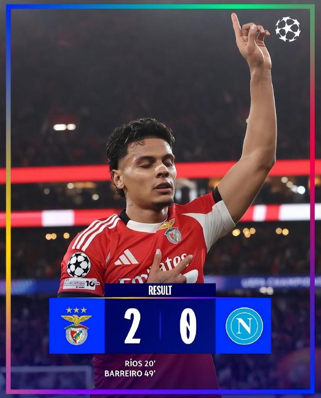 这赛季的本菲卡欧冠签运其实非常糟糕,首轮对阵卡拉巴赫更是主场2:3爆冷翻车,若热因此下课,穆里尼奥得以回归执教。之后2轮先后对阵实力更为强劲的切尔西与纽卡斯尔,本菲卡也都是在客场吃下败仗;第4轮对阵勒沃库森又在占据大好局势下被对手绝杀。第5轮本菲卡再次让胜利溜走,2:0战胜阿贾克斯拿下首胜,这一轮又拿下那不勒斯,拿到6分来到了排位第25,距离附加赛只有1分;早在4连败的时候,魔力鸟就表示一定会带领本菲卡拿到附加赛名额,现在穆帅正在一步一步实现他的承诺。